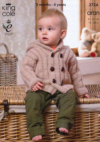 Coat with Hood, Jacket with Pockets and Lacy Cardigan in King Cole Comfort Aran (3724)