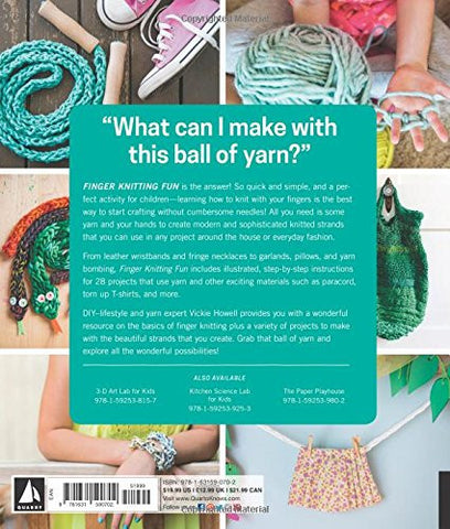 28 cute and fun designs with kids in mind. Perfect for children, finger knitting is knitting without needles, and the book contains funky designs for jewellery and wearable accessories to wall art, door curtains, and room decorations. Includes illustrated, step-by-step instructions for the exciting projects which use yarn and other exciting materials such as paracord, leather, and more.