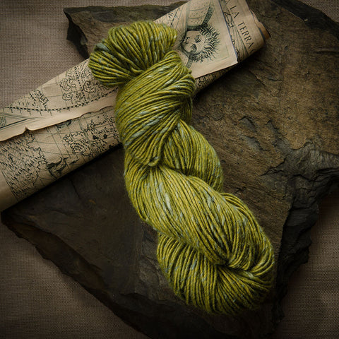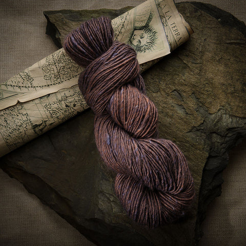 A luxurious blend of the softest baby alpaca, springy merino wool and sensuous silk. A single ply aran or worsted weight yarn which has been kettle dyed, it has a gentle feel, a slightly rustic appearance with occasional slubs.